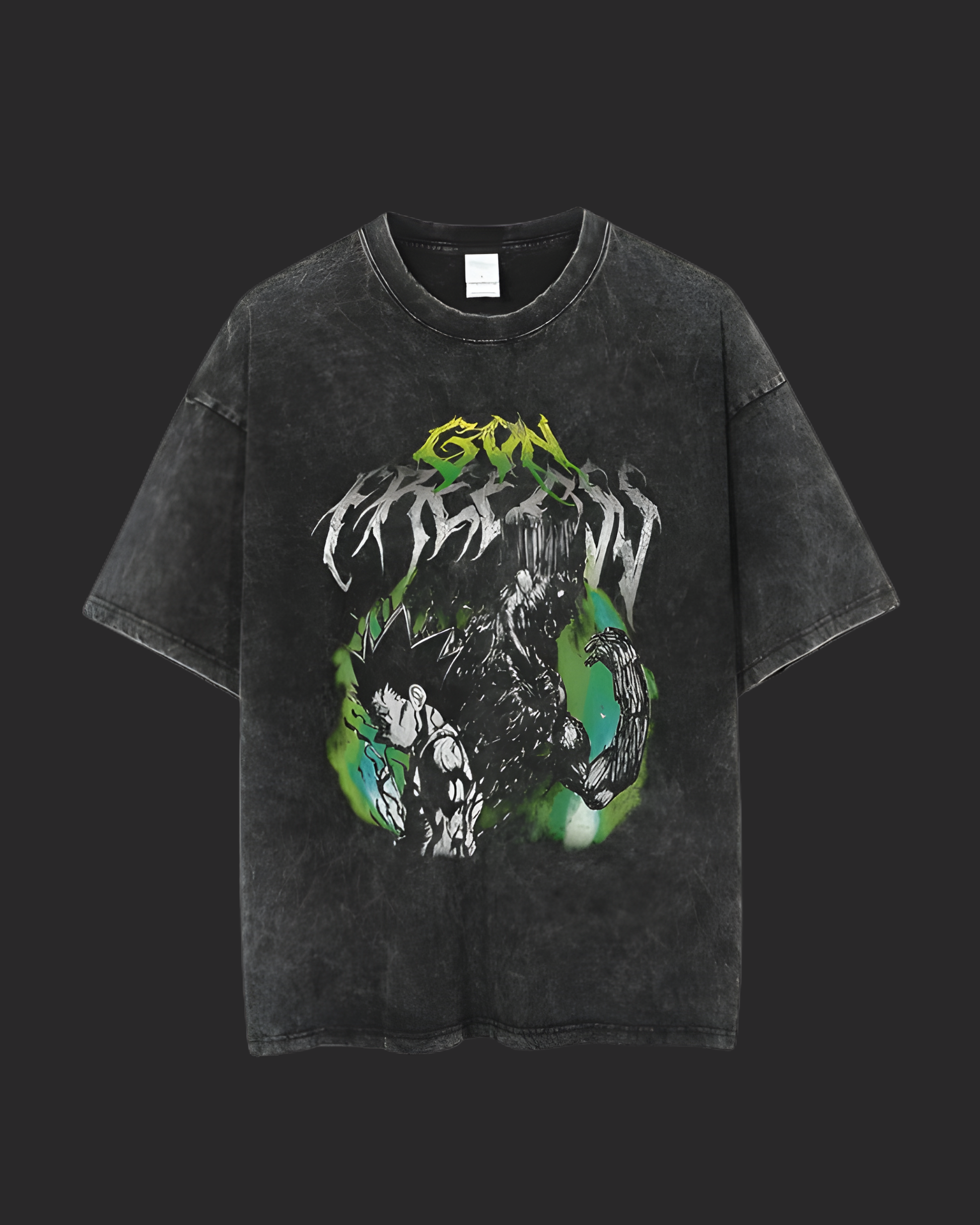 When emotion breaks its limit, rage takes control. This acid-washed anime tee is inspired by Gon’s rage — the moment grief overwhelms innocence and power is forced out at any cost. The dark, distressed wash reflects loss, anger, and the irreversible choice to trade everything for strength.